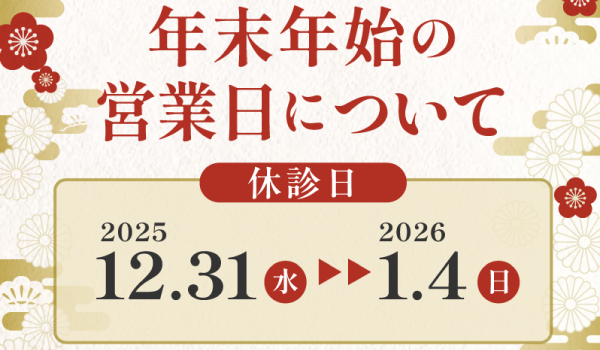 フジクリニックでは誠に勝手ながら、下記を年末年始休業日とさせていただきます。